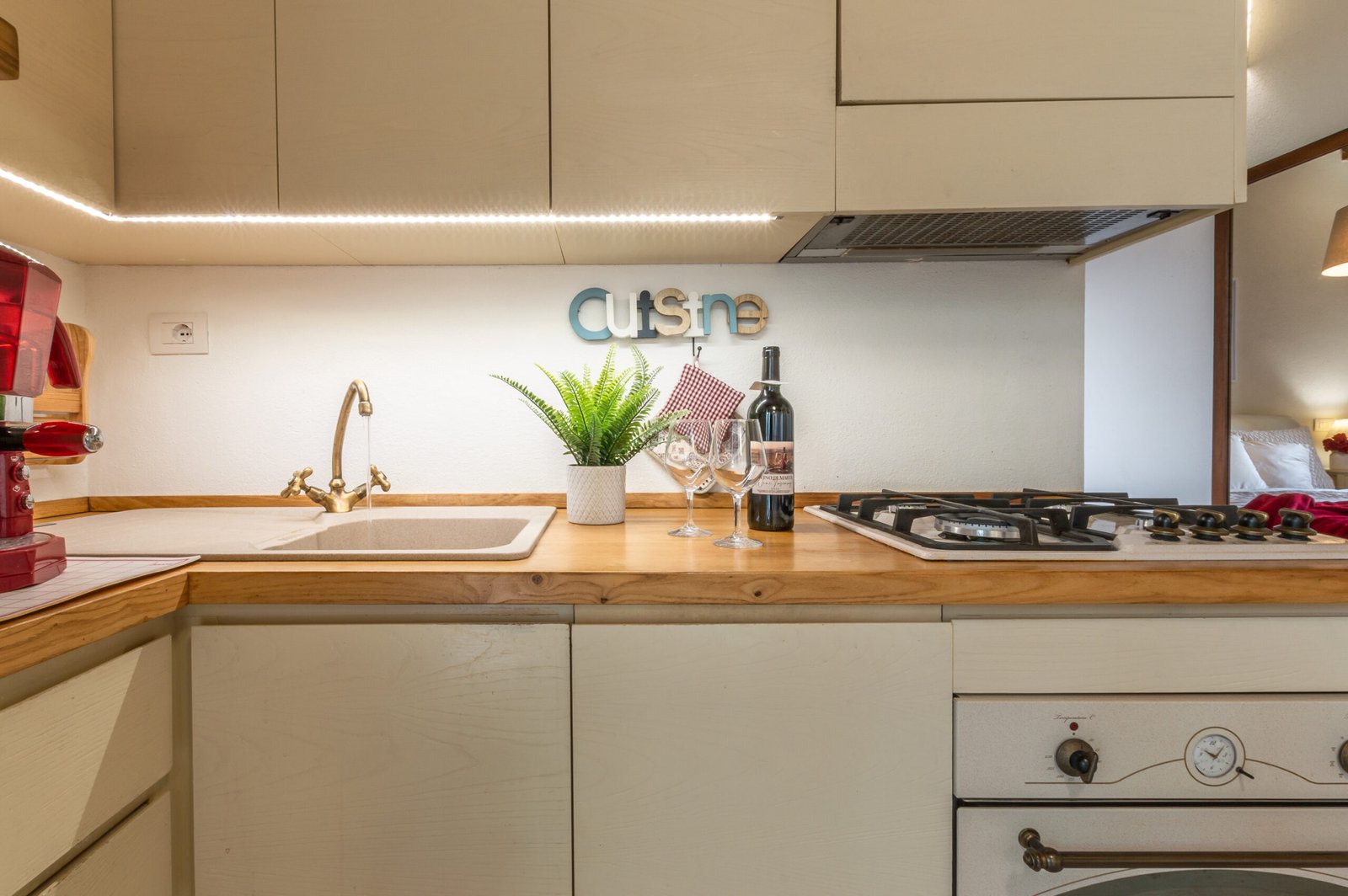Questo appartamento, “Red Rose“, è composto da una camera matrimoniale, bagno (con doccia idromassaggio), soggiorno con cucina (completamente attrezzata) e tv.
